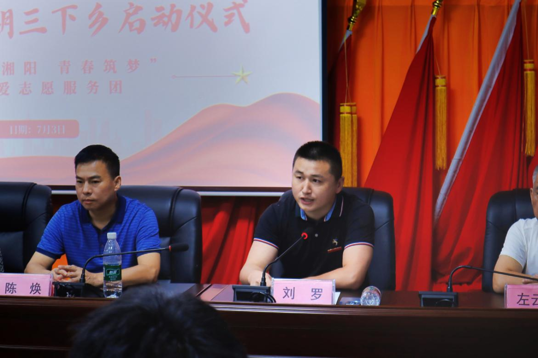 2025年7月3日,衡阳师范学院教育科学学院2025年大学生暑期“三下乡”社会实践活动在衡阳市雁峰区岳屏镇东湖村会议厅正式拉开帷幕。岳屏镇人大主席陈焕、岳屏镇党委委员胡文婷、心理健康教育湖南省科普基地兼衡阳市青少年心理健康教育科普基地首席专家蒋湘祁、衡阳师范学院教育科学学院心理学系主任刘罗以及学学生党支部书记吴金煌等出席本次启动仪式。