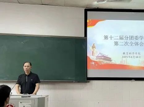 为推动我院分团委学生分会各部门间的协同联动,增强团队凝聚力,提升工作效率,确保期末周的各项工作能够有序、高效地进行,6月16日晚,我院于行知楼302教室成功召开了第十二届分团委学生分会2025年第二次全体会议。本次会议由学工办主任邹伶俐主持,党总支副书记陈界峰以及辅导员老师申鑫玉、吴金煌、单胡杨出席,团学会全体成员以及2022-2024级各班班长、团支书、党支部代表共同参与本次会议。