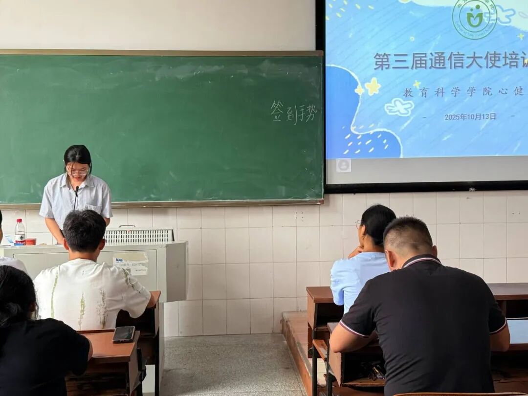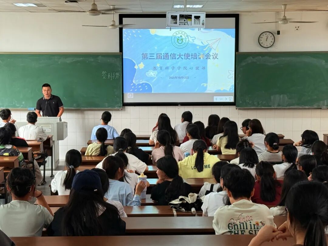 为提升通信大使书信沟通专业能力,深化校地心理健康教育协作,2025年10月13日中午12点,我院心理健康部于行知楼302教室召开第三届通信大使培训会议,为“心灵信箱”活动持续赋能,助力中小学生心理健康成长。