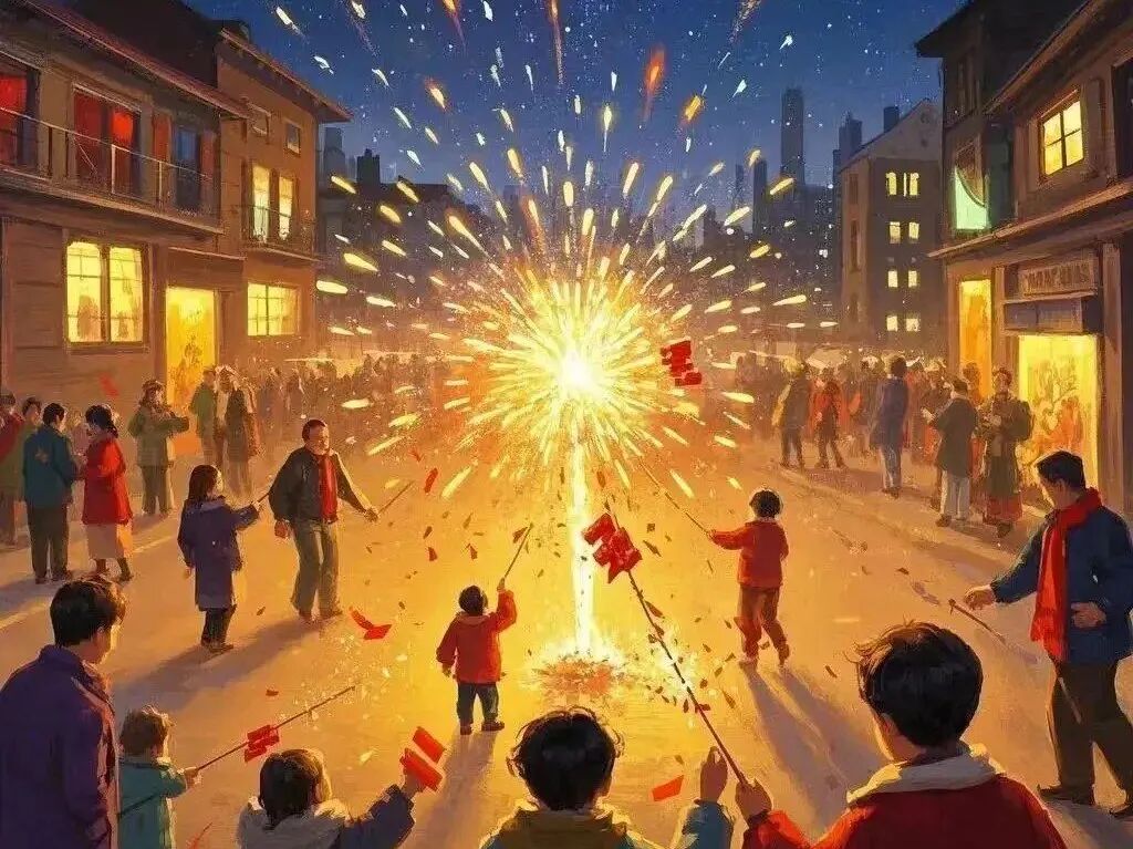 通常在年夜饭前后或零点新年钟声敲响时燃放,噼里啪啦的声响寓意驱散晦气、迎接新年的好兆头,不过现在很多地方为了环保和安全,会用电子鞭炮替代。