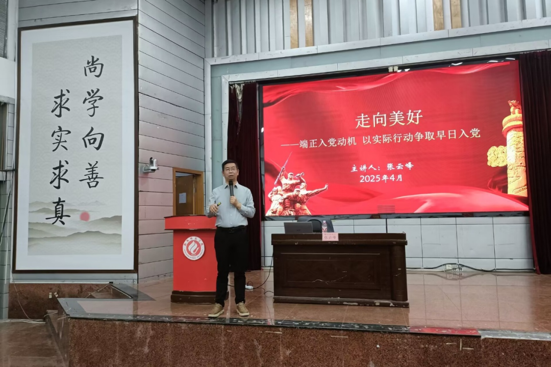他剖析了正确入党动机在理想信念、价值追求、责任担当等方面的本质内涵,强调入党积极分子应摒弃功利化、虚荣化等不良倾向,树立为共产主义事业奋斗终生的崇高理想。张云峰指出,要以实际行动践行入党初心,立足本职岗位勤勉尽责,在学习工作中发挥模范带头作用,主动为集体贡献力量,积极参与社会服务与公益活动。他着重强调,入党积极分子需将个人成长与党的事业紧密结合,以高标准严格要求自己,不断提高党性修养与综合素质。