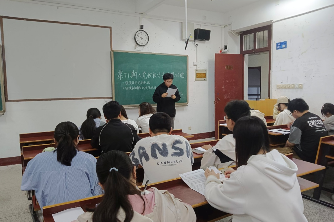 2025年4月25日晚,我院学生党支部组织入党积极分子们,针对这半个月的党课学习进行了思想汇报。本次讨论主要从对党的认识以及新时期的党员标准这两方面做出了思想汇报。