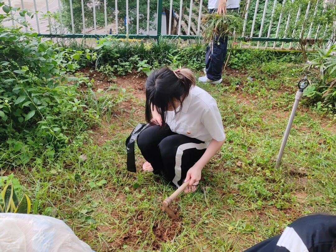 活动现场,入党积极分子们来到户外实践区域,这里绿意盎然,却也杂草丛生。大家迅速分组,有序领取工具,便投入到除草劳动中。他们有的手持小锄头,仔细清理着花坛边缘的杂草;有的直接用手拔除草丛中的杂物,不怕脏、不怕累。尽管烈日炎炎,汗水湿透了衣衫,但每个人的脸上都洋溢着专注与坚定。 在劳动过程中,入党积极分子们相互协作、互相鼓励。大家一边交流劳动心得,一边分享对党的认识和感悟,现场氛围热烈而融洽。