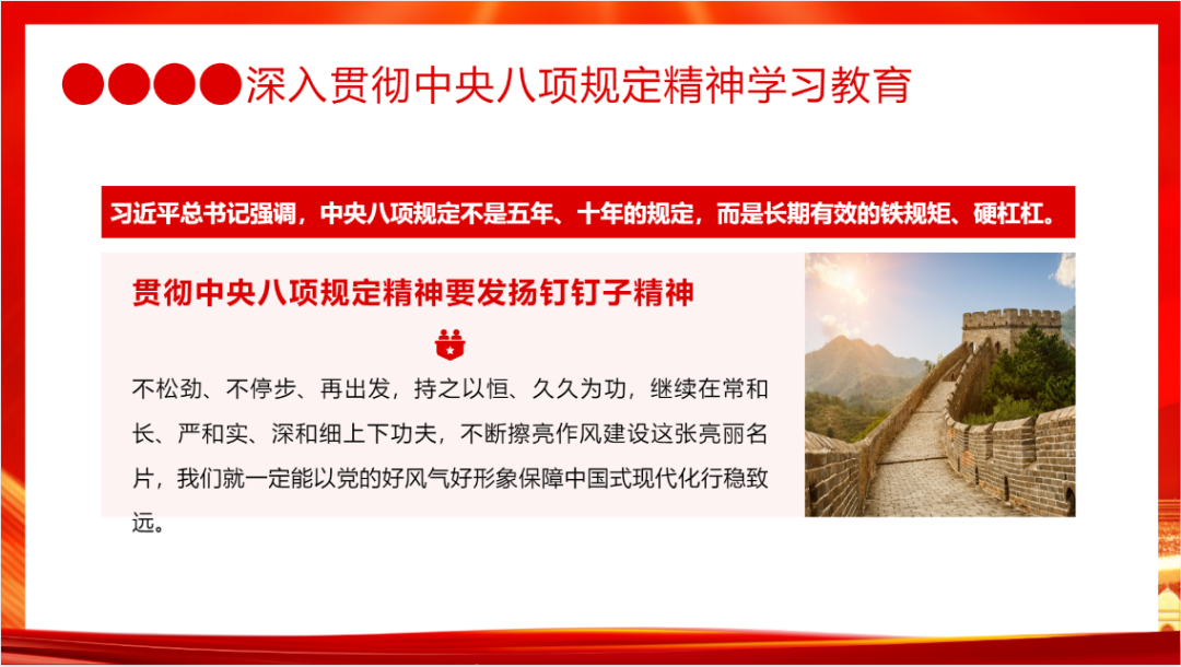 在授课过程中,授课人着重指出,违反中央八项规定精神问题,尤其是“四风”(形式主义、官僚主义、享乐主义、奢靡之风)方面的违纪行为,与党的作风建设要求背道而驰,广大党员务必时刻保持警醒,严守纪律红线。授课人也对习近平总书记强调内容进行着重讲述:中央八项规定作为铁规矩、硬杠杠,严肃查处顶风违纪,隐形变异的“四风”问题督促党员干部坚决反对特权思想和特权现象。树立正确权力观、政绩观,事业观。锲而不舍,持之以恒,把贯彻落实中央八项规定精神一抓到底;守正创新,把改革精神和严的要求科学精准整治作风顽疾;标本兼治,以作风建设新成效为奋进新征程保驾护航。