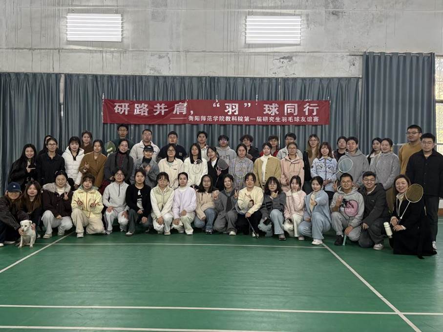 为丰富研究生课余生活,增强团队协作与体育竞技能力,衡阳师范学院教育科学学院第一届研究生羽毛球赛于2025年11月29日圆满落幕。学院高度重视研究生的综合素质培养,此次赛事正是落实多元化育人理念的重要举措。比赛以羽毛球为纽带,精心设置男单、女单、女双、混双多个项目,既为日常深耕科研的研究生们搭建了释放压力的平台,也为大家提供了展现自我的舞台。赛事消息一经发布,便得到全院研究生的积极响应,选手们踊跃报名、认真备赛,赛场内外处处洋溢着教科院学子昂扬向上的青春气息,充分展现了大家对体育竞技的热爱与对集体活动的热情。
