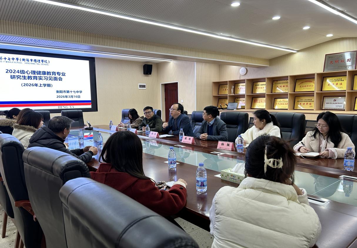 春风送暖,研途启航。为深化教育实践教学,推动理论知识与中学教育教学实际深度融合,2026年3月16日,衡阳师范学院教育科学学院6名2024级心理健康教育专业研究生朱勤芳、薛佳璇、许倩、杨楚唯、李金瞳、张一佳,以及1名2024级教育学专业研究生石玉洁,奔赴衡阳市雅礼学校(衡阳市第十七中学),正式开启教育实习之旅,衡阳市雅礼学校也为同学们召开了教育实习见面会,为实习工作顺利开展奠定坚实基础。